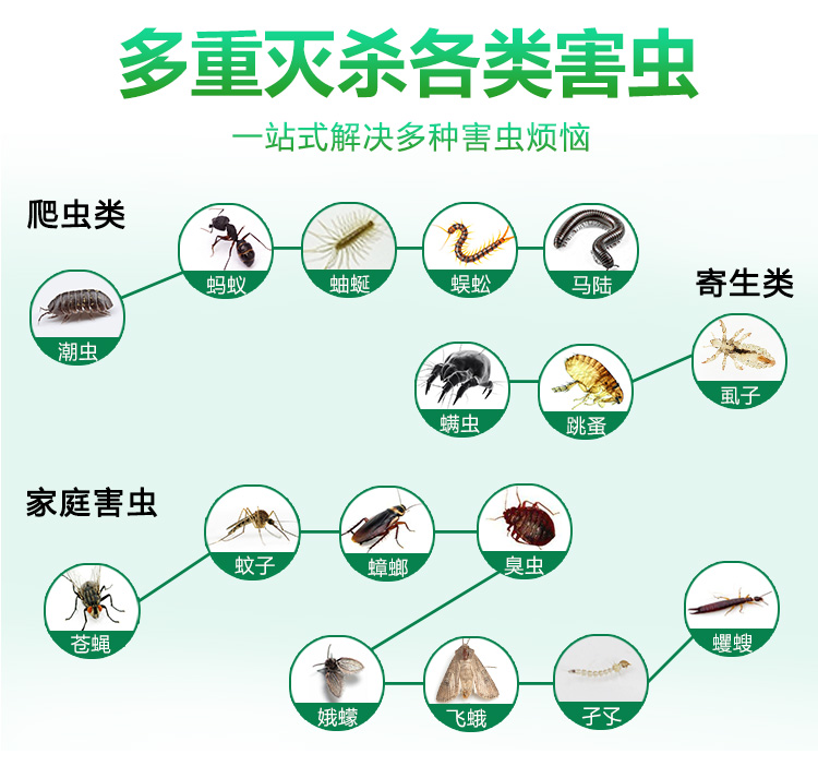 灭杀对象:蚊子、苍蝇、跳蚤等